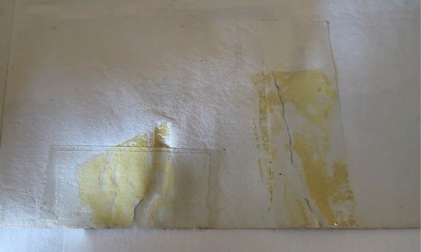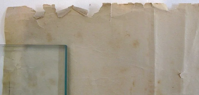 Albumen Print. Pressure Sensitive Tape with associated tear and Staining. Detail. Verso.