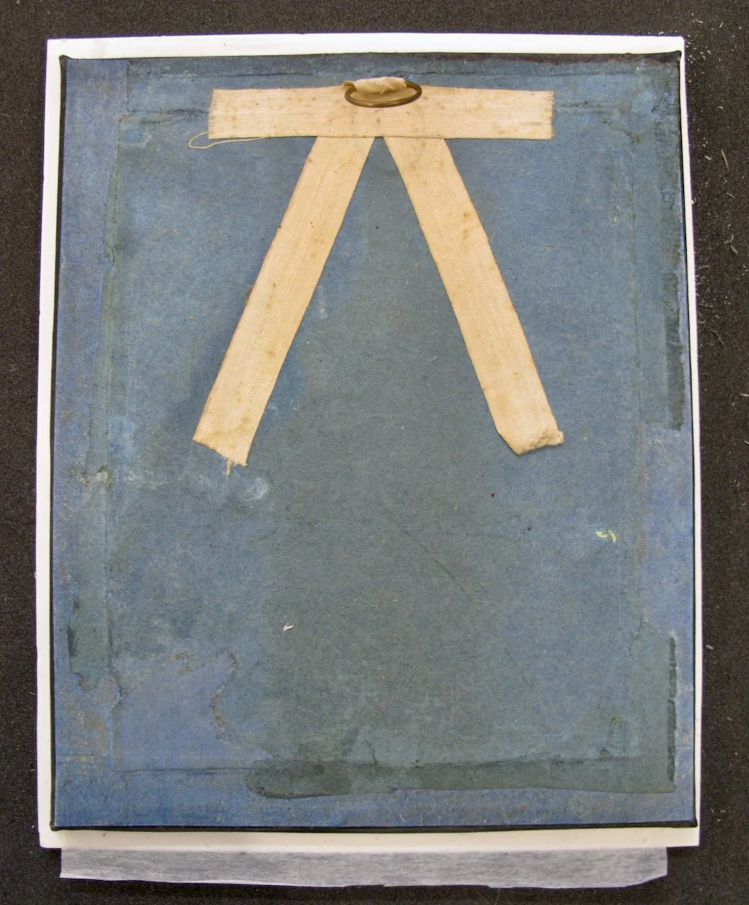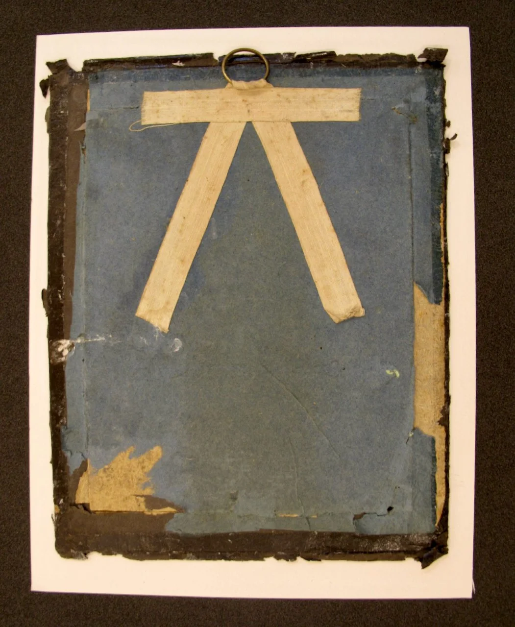 Framed Daguerreotype with new conservation seal and repaired backing. Verso.